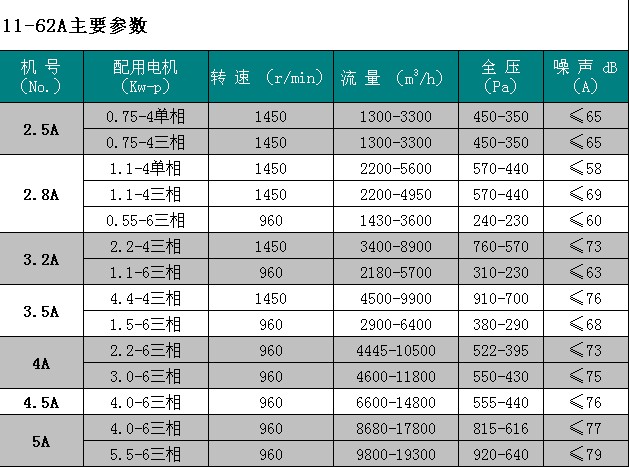 详细说明:11-62A型低噪声多翼离心式通风机是我厂为适应日益发展的净化工业及环保降噪的需要而设计制作的,风机在实际时采用噪音、效率等各项气动参数的目标优化设计方法,实现了整机的最佳匹配,具有良好的气动性能,叶轮及皮带轮均经严格的静、动平衡校正,故具有运转平稳、噪音低、流量大、震动小、寿命长等特点。广泛用于食堂、宾馆酒楼、饮食店等公共场所的厨房排风,抽油烟或通风换气之用,并适宜于粮食机械、化工机械、塑料机械等生产设备上使用。用途广泛,适应性强。