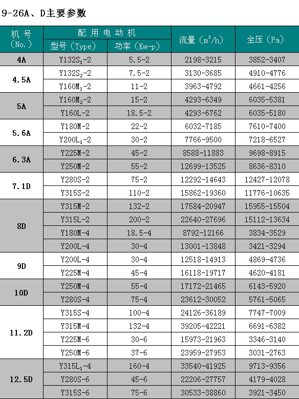 9-26型系列高压离心通风机是国家经委和机电部推广的节能风机产品,适用于一般煅冶、玻璃、陶瓷、无线电、电镀、蓄电池等行业高压强制通风以及粮食、饲料、矿粉、塑料等加工行业的物料输送。输送介质为空气及其它不自燃、自爆、对人体无害、对钢铁材料无腐蚀性的气体。