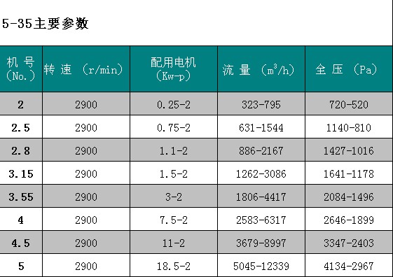 详细说明:5-35型离心通风机为化纤厂干燥机专用的再生风机,亦可用于一般工厂及大型建筑物的室内通风、换气。所输送的气体应为不超过80℃的空气和其它不自燃的、对人体无害的、对钢铁材料无腐蚀性的气体。气体内不许含有粘性物质,所含的尘土及硬质颗粒物不大于150mg/m3
