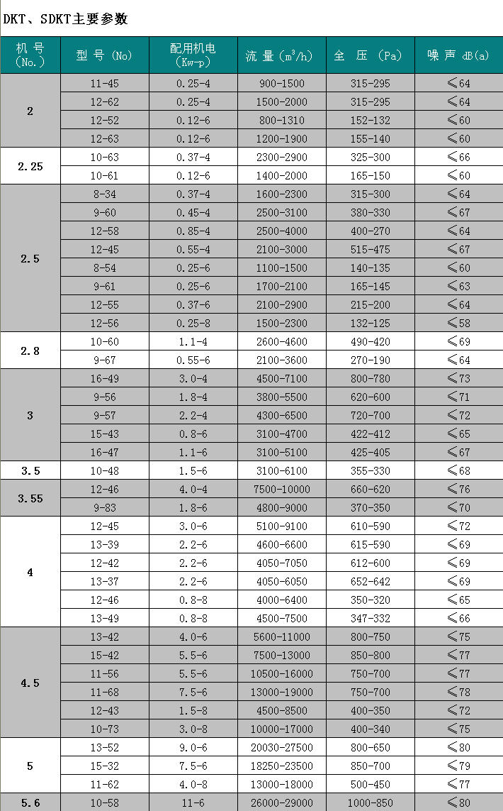 详细说明:DKT型外转子离心式空调风机具有风量大、噪声低、结构紧凑、坚固耐用、外形美观。安装使用方便的多翼式离心风机。该风机广泛适用于各种空调机组,空气幕,冷暖风机等,亦可用于工矿企业、公共场所的室内通风换气。它所输送的介质为空气和其它不自燃的对人体无害的气体,气体内不允许有颗粒物质,含尘量不大于150mg/m3。DKT型外转子离心式空调风机主要由叶轮、机壳、外转子电机等主要部件组成。叶轮由数十片前弯的叶片于轮盖、中盘铆接而成。各件均采用冲压模具制造,尺寸、型线准确、可靠,空气性能良好,并经静、动平衡校正,运转平稳,噪声低;机壳采用专用设备咬口、包边制成,坚固耐用,外形美观大方;电机采用外转子式,内置于机壳与叶轮直联,结构紧凑、并经动平衡校正,运转平稳,噪声低。SDKT柜式空调风机是本公司新研制的新产品,内置DKT空调机,壁板衬贴有消声板,从而降低噪声。该风机运行平稳,安装方便,与HTFC相比,相同机号其噪声低、流量大、压力高、性能优良、结构简单、成本低是酒店、宾馆、娱乐场所,大楼通风换气选择的产品。